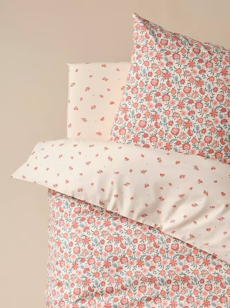 Pour parfaire l'ensemble et apporter une touche de fraîcheur supplémentaire, optez pour ce drap-housse entièrement recouvert de motifs floraux délicats. Il transforme le matelas en un véritable champ de fleurs, doux et accueillant. Idéal pour compléter une parure de lit unie ou pour un total look fleuri qui égayera la chambre de votre fillette dès le réveil. Sa matière en jersey de coton garantit un ajustement parfait et une grande douceur nuit après nuit.
